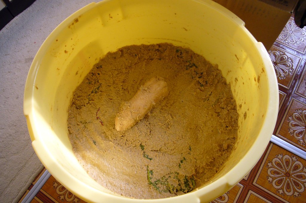 - ※1: 食べ残しは既存の糠味噌に漬けておきます。
