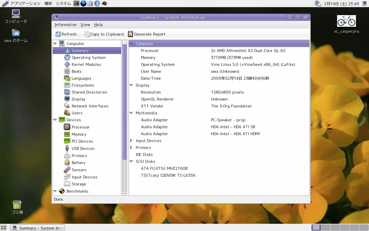 柄にもなく Vista をいじったり、たまたま仕事で活躍してくれたり、 はたまた VineSeed をインストールして遊んでたりしてたけど、 今日は天気が良かったので、思い切って VineSeed の x86_64 化してみました。