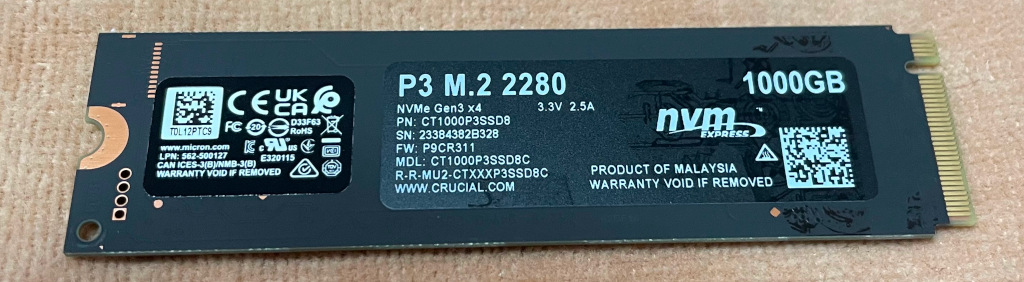 SSDをCrucialの1TBに換装した。